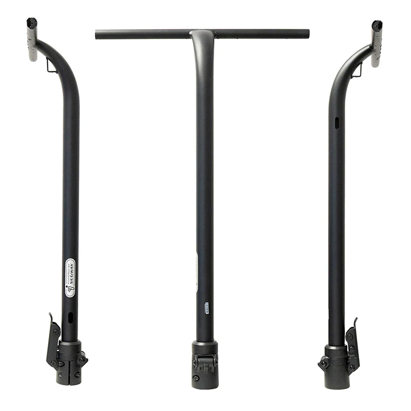 Suporte de bicicleta metálico preto com alça horizontal e etiqueta 3T RACING